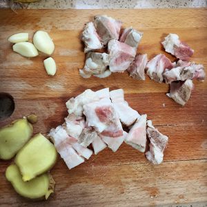 肉焯水切块 姜切片