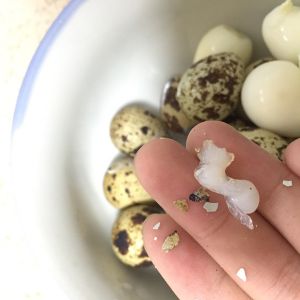 鹌鹑蛋剥皮 这个蛋是生的买来自己煮了剥皮的 但我感觉现在蛋怎么这么假呢 不知道你们家是不是这样(剥皮备用)
