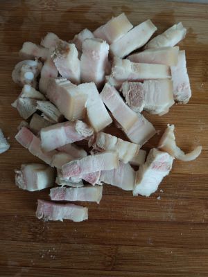 五花肉切好,洗干净,然后用清水煮一下、把肉捞出来用水把沫子洗净,再控下水!