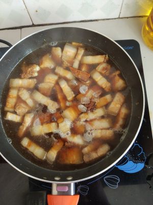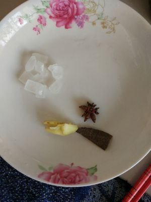 加入热水,八角,花椒,桂皮,冰糖大火煮十五分钟后,转小火熬40分钟,直到收汁