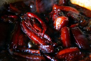 蒜姜切片葱切碎,辣椒切断,准备好八角