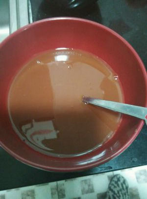 制作调料:番茄酱+清水+生抽+糖 我也没注意此次的比例,大家自己试一下味道。