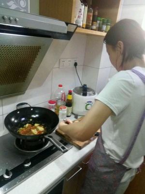 放入花椒翻炒,然后用剪子直接把干辣椒剪碎到锅里,继续翻炒,放入蒜姜片,等香味出来放一勺香辣酱一勺红烧酱油半勺糖。 如果没有直接放两勺红烧酱油,一勺白糖,适量的盐。
