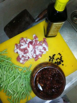 肥瘦相间的肉切片,豇豆切长段