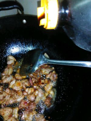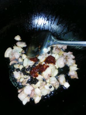 肉片全部变色并慢慢开始卷曲,放入豆豉炒香。