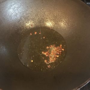热锅凉油,下入葱姜蒜、干红辣椒、冰糖,转中火至冰糖融成褐色。