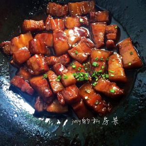 最后出锅前加少许鸡精调味,装盘撒上葱花,肥而不腻的五花肉就做好了。