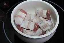 锅里加水,烧开后,把肉放进去煮一下空干水分