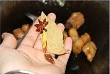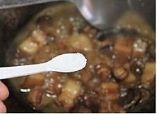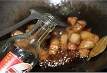 倒入豉油3汤匙,米酒1汤匙,炒香然后加水至末过肉面大火烧开,转最小火慢炖