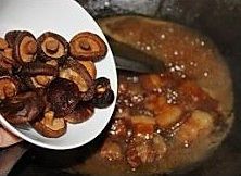 肉炖煮至水量剩一半的时候,加入香菇同煮
