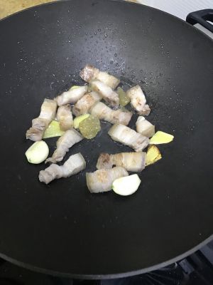 放葱段、花椒大料,过水煮肉泛白,过温水洗净