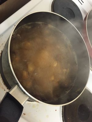 转为小火煨制60分钟,所谓煨制指的是锅保持微沸,火一定要小。