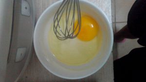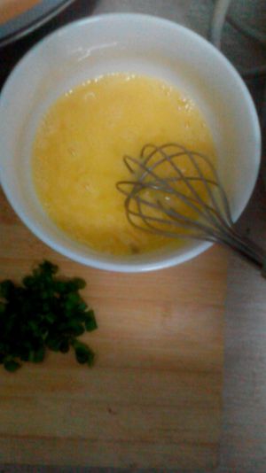 鸡蛋打散,慢慢的倒入锅中,然后用勺子慢慢的搅动,形成蛋花。