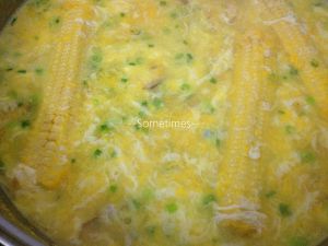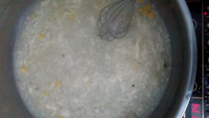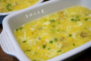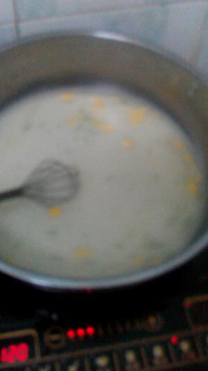 慢慢倒入玉米汤中,一边倒一边搅拌,直到自己喜欢的浓稠度。