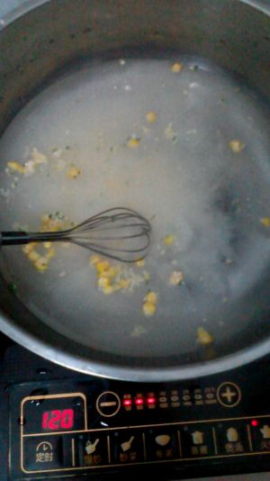 水开后放入玉米渣,一开始要不停的搅拌,把它搅匀。