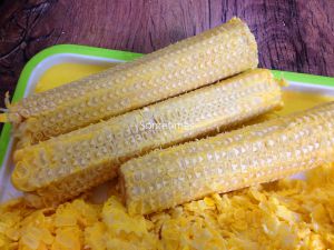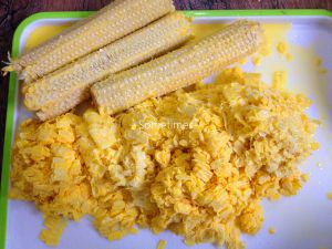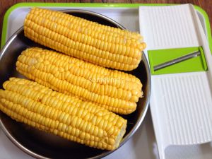 我喜欢玉米粒更加细,所以我用的是擦片器,没有的可以直接用刀来擦碎。