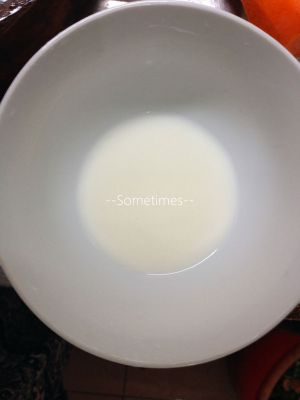玉米渣放到小盆里,放少许冷水解开(防止在玉米渣下锅的时候打成疙瘩)。