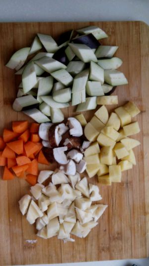 茄子 土豆 莲菜 香菇 胡萝卜切块备用