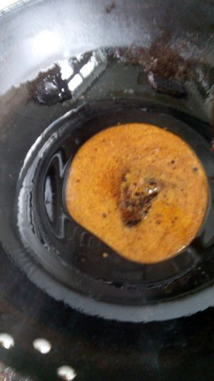 炒锅到少许油,凉油时放入冰糖小火化糖起泡。