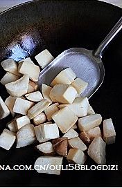 加入少量油煎肉块,煎的时候会出很多油的,不要多加油了