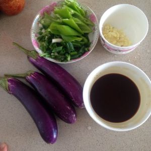备好所需材料,酱油,淀粉,白糖,鸡精,加少许水溶解,茄子削皮切滚刀块,用盐巴腌制5分钟,清洗干净,然后放点干淀粉拌均匀