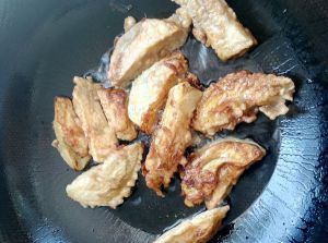 锅中倒入油,炸。油不要倒太多哦,适时添加,以防浪费。