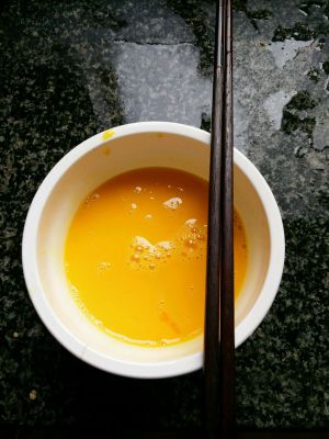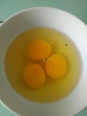 三个鸡蛋哦~加半勺盐,还有温水少许,打开,这样是为了我们鸡蛋的嫩滑