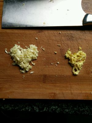 鸡蛋打散,青椒切丝,蒜瓣切碎