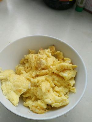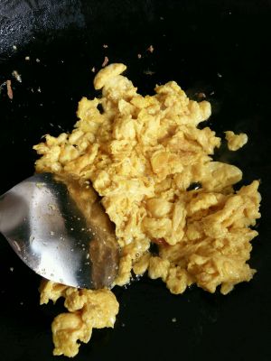 然后加入鸡蛋液,翻炒成块后再加盐即可。