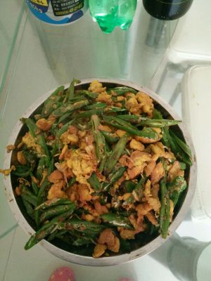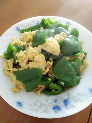 锅内留油放入青椒,生抽耗油以及少许盐,快速翻炒,放入鸡蛋