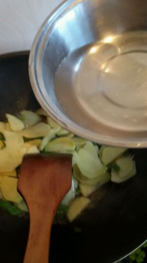 把土豆放进去煸炒。