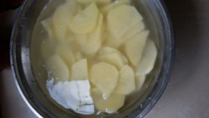 土豆切片并泡在水里去淀粉。