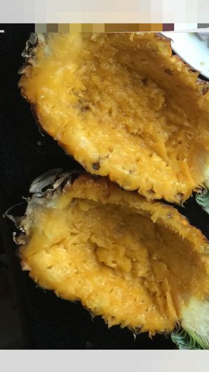 将炒饭装入菠萝壳中,入烤箱210度10分钟。大功告成了!