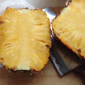 把菠萝挖出来 用盐水泡一下 同样 壳也要泡泡水