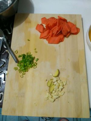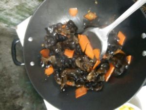 蒜姜爆锅,放如胡萝卜翻炒两下再放入木耳翻炒