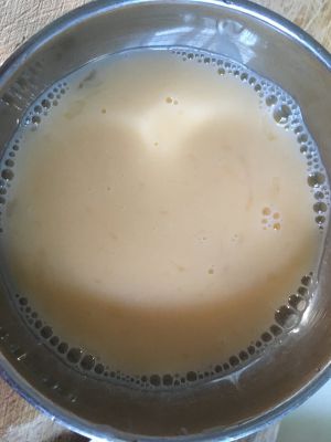 打一个鸡蛋,加适量盐打散,加入一倍的水