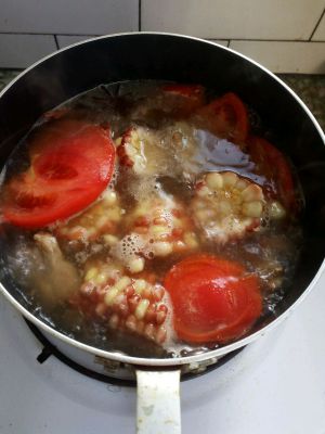 加入玉米和西红柿后再煮20分钟。