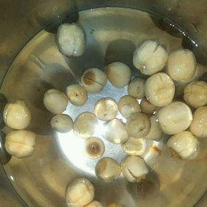 等水滚时放排骨关火,焯掉血水后过清水洗净沥干备用