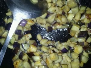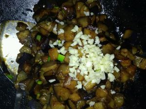 放入茄子翻炒,这时候放盐,酱油,鸡精