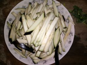 茄子切条(用盐腌制一会)