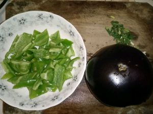 青椒洗干净切成片,茄子也洗干净