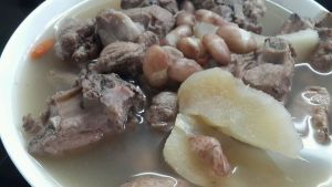 准备好材料,花豆提前30分钟清水浸泡。排骨洗净后焯水,药材清水洗净备用。 排骨与姜片一起炖煮40分钟后放花豆一起小火煲,一个半小时后再放淮山和枸杞。煲至2小时就可以了。