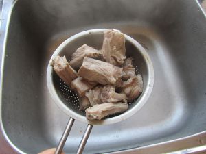排骨泡去血水,入冷水锅里煮开,撇去浮抹捞起备用