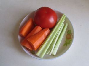 准备好蔬菜,西红柿,红萝卜和西芹;