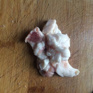 五花肉挑取瘦一点的部分切成丝或者块,用嫩肉粉腌制十分钟。