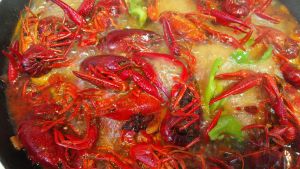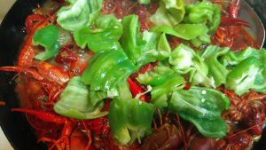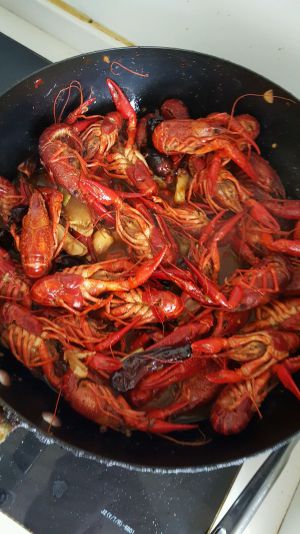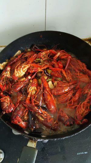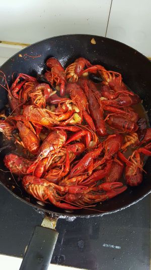 炒料:烧油加豆瓣酱、大蒜丶姜丝丶干辣椒丶小米椒、八角、桂皮、香叶、花椒丶麻椒炒出香味加入炸好的龙虾,加盐,鸡精翻炒入味,到入啤酒盖上锅盖。