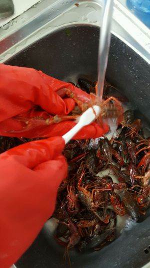 将小龙虾洗净,用牙刷挨个儿刷干净,自己吃,这是必须的