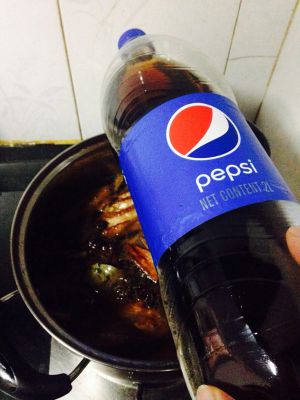 倒入可乐刚刚没过鸡翅(建议百事,比较甜)口味重者,可适量加少许盐。大火煮开后调小火慢炖30分钟,收汁。