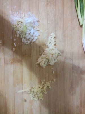 大蒜和姜切粒,葱头也切成粒