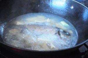 用大火,放开水把鱼煮十分钟,呈奶白色